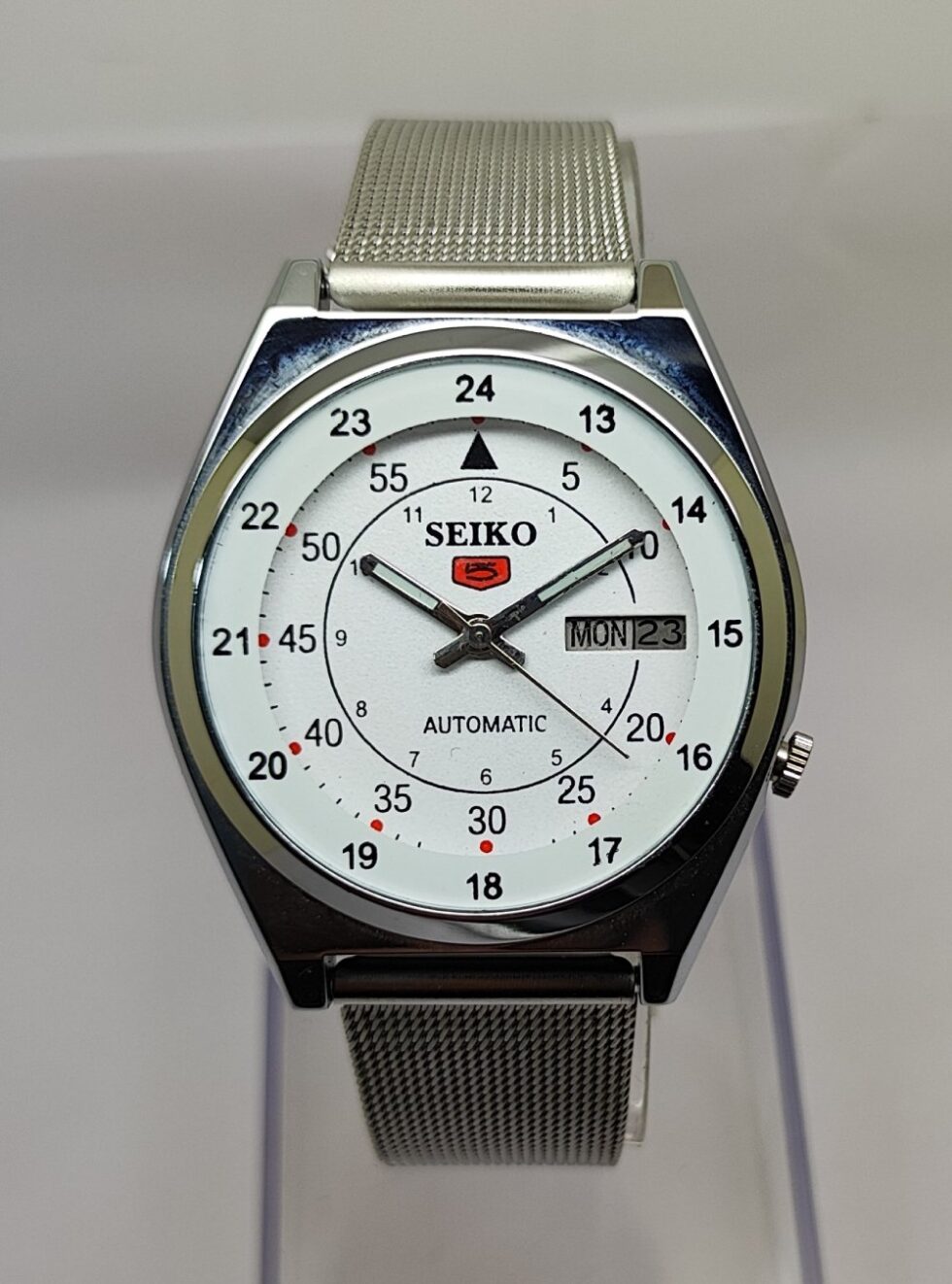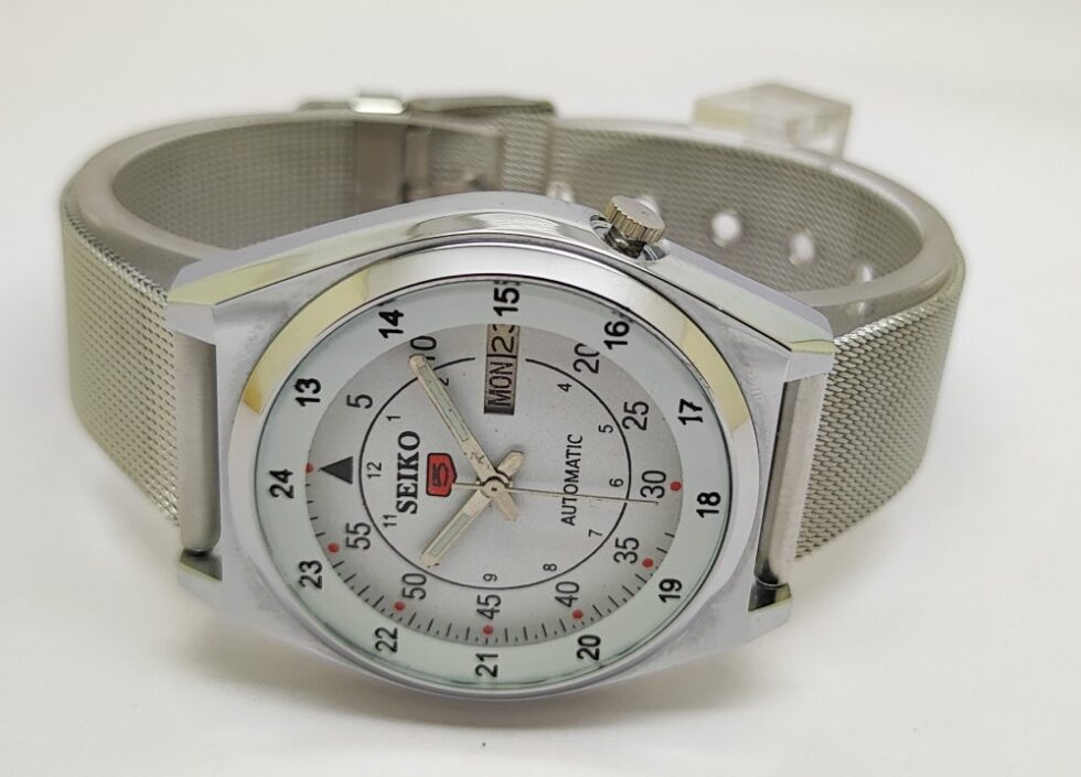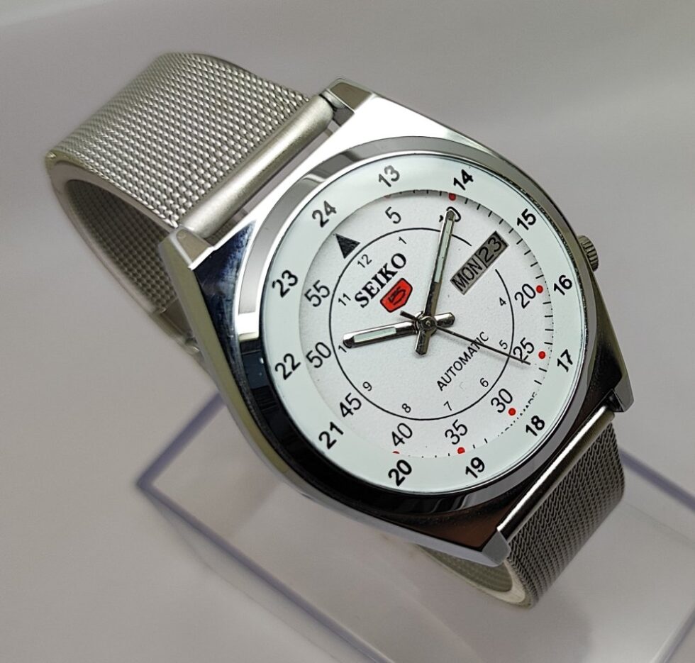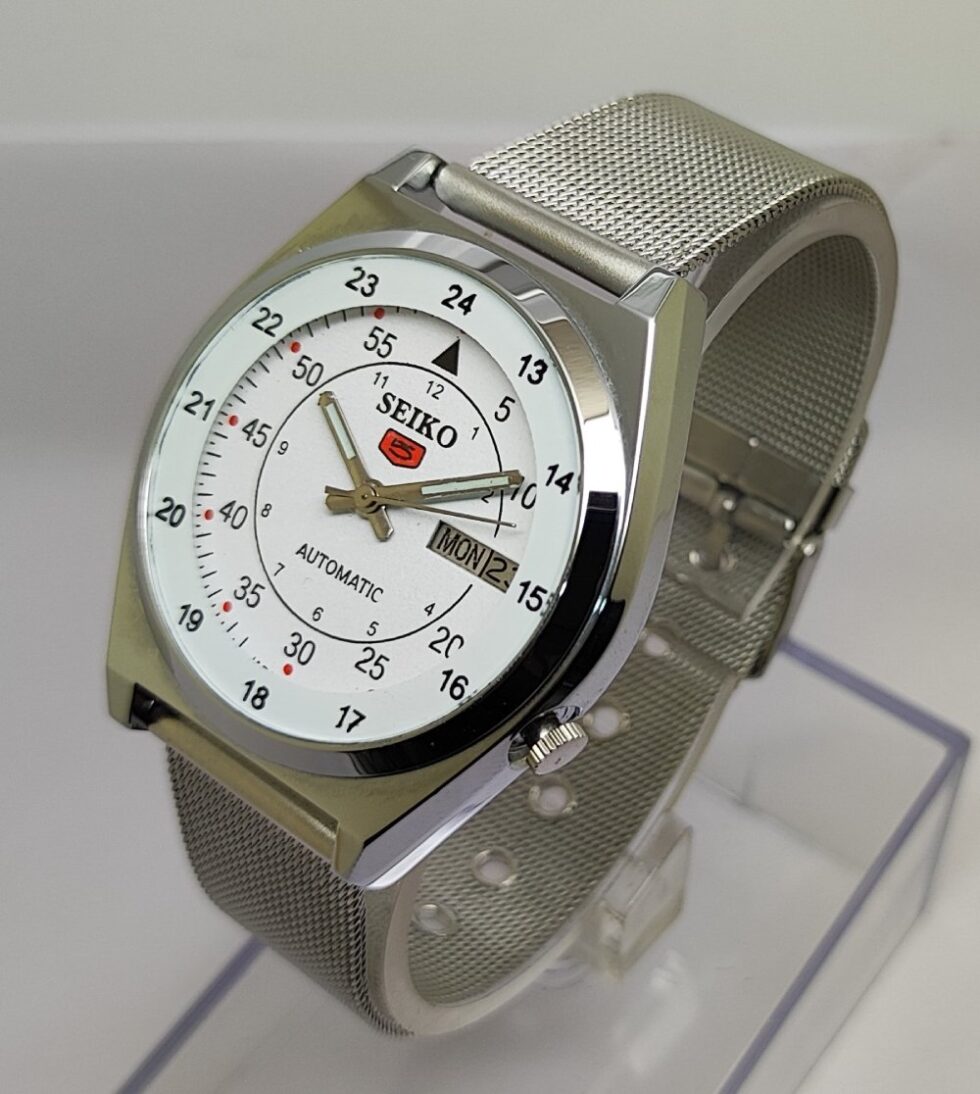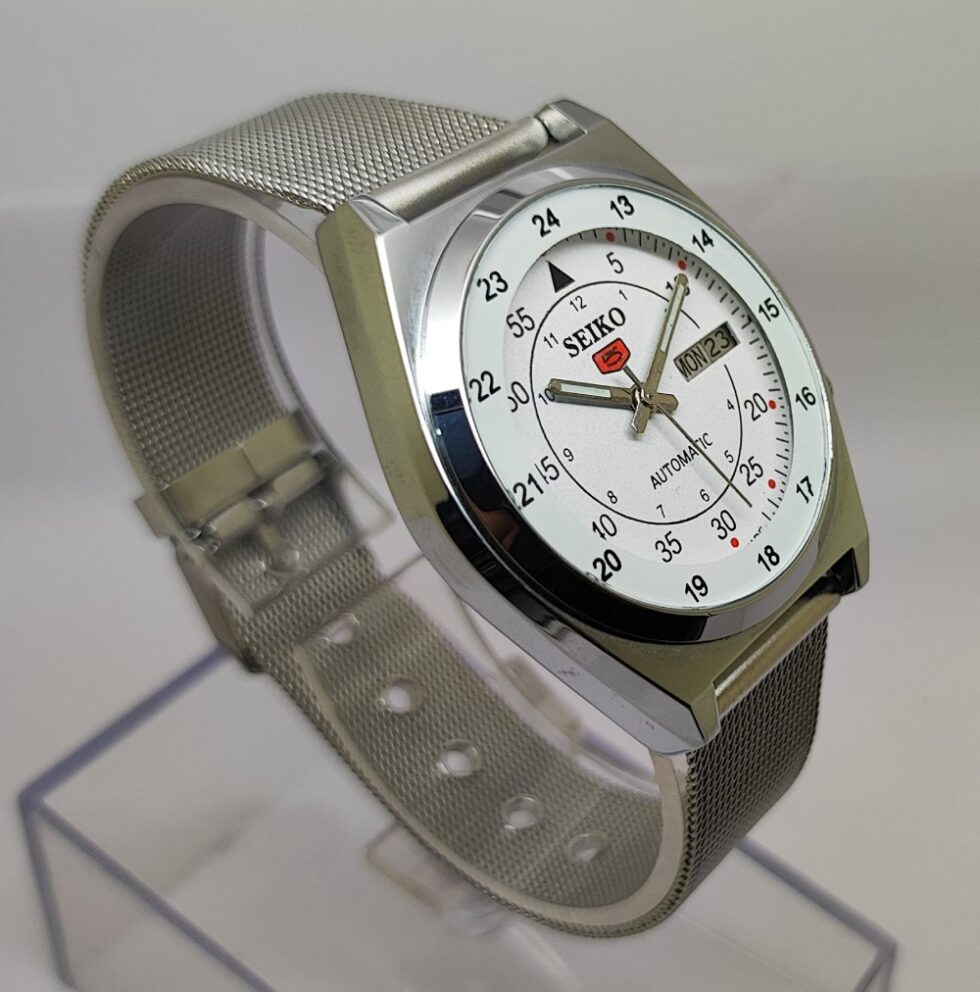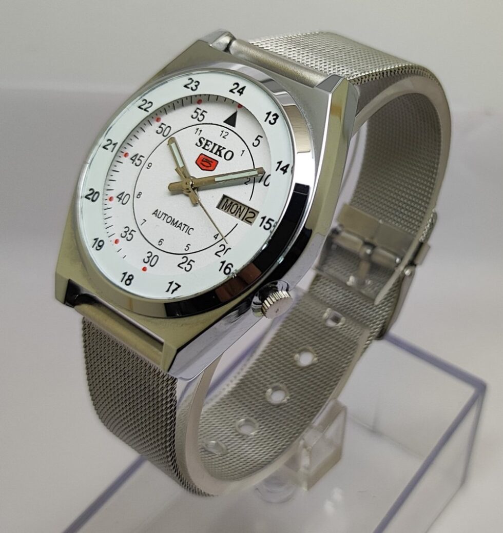Seiko 5 Automatic Men Steel Day Date 17 Jewels Japanese Mod Wrist Watch